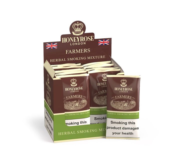Honeyrose "FARMERS" roll your own herbal smoking mixture is made from our traditional blend of aromatic herbs. It has an addition of vanilla flavoring and extra honey which makes it pleasantly aromatic - it fills the room with sweet yet woodsy smell. Its rich taste and smooth flavor make it ideal for use as a roll-your-own cigarette, in a pipe or with any other smoking products.
